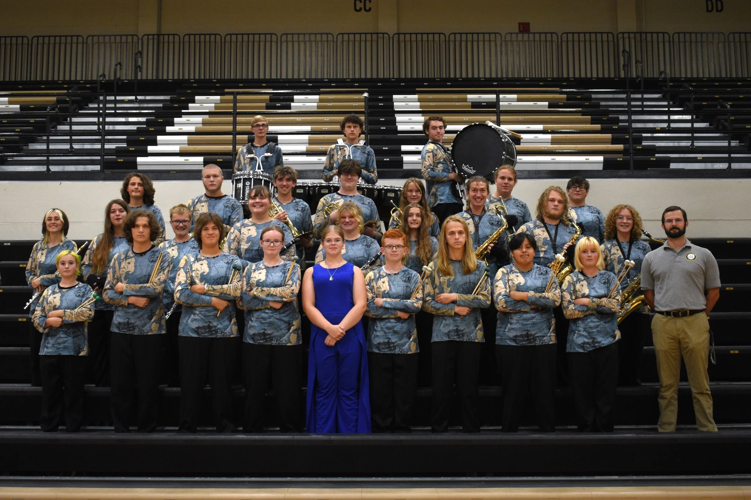 Name/logo printed on our fall marching band show shirts